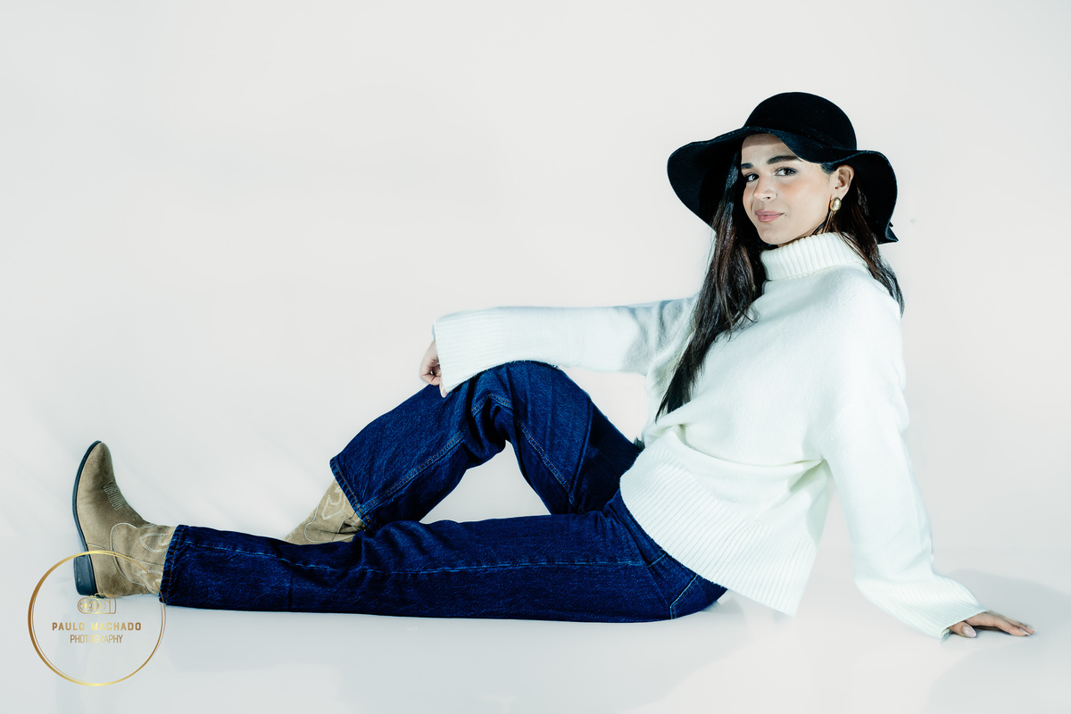 Ensaio de estúdio recorrendo à técnica de "High Keys" e foco em poses, sessão orientada para este propósito, mas feita naturalmente de modo a conseguir a cumplicidade entre modelo e fotógrafo.