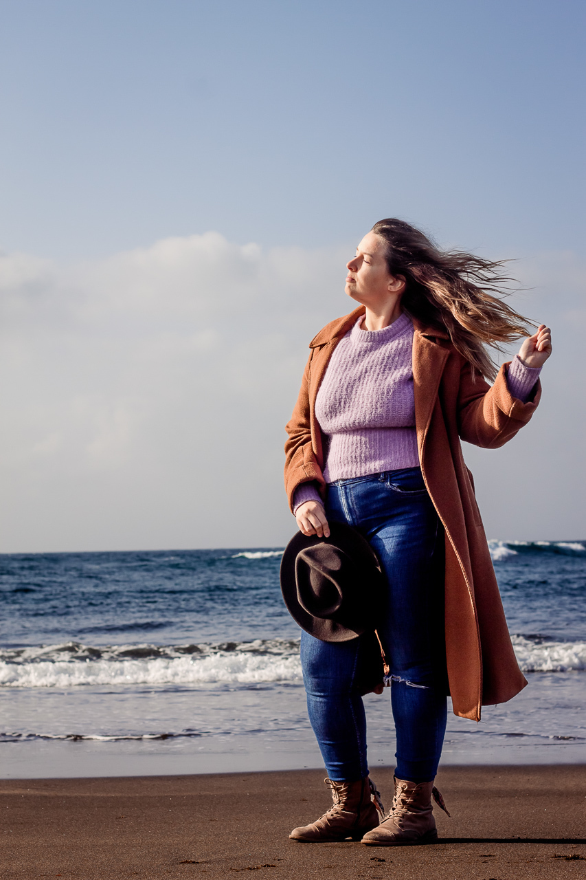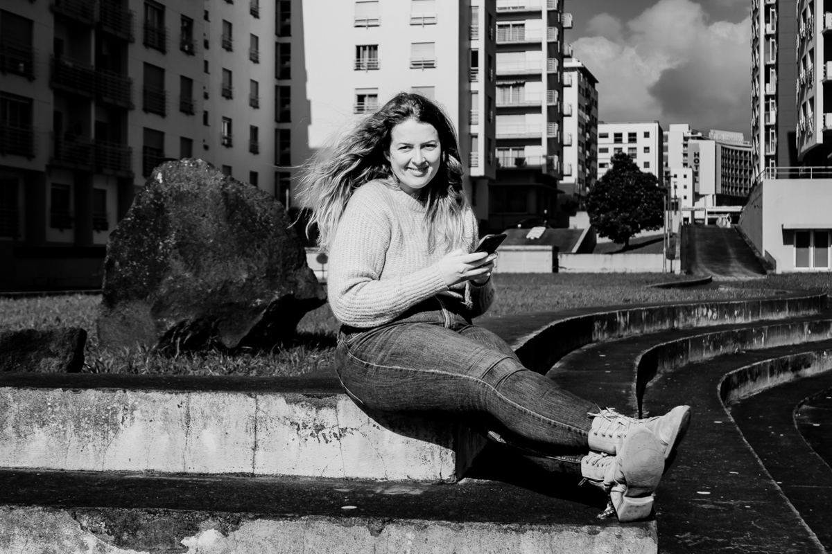 Ensaio fotográfico de portfólio, artístico, retrato, num contexto de outdoors realizado na praia do Pópulo e em contexto citadino em Ponta Delgada